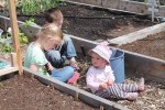 D’Arcy’s summation of the day says it all: “That was way too cool…everything just slipped into place. New people fell into the rhythm…strangers got gardening advice…best of all… the younger set were right in the middle of it! (our youngest chef & a new staff photographer) The youngest were trowelling & watering.